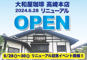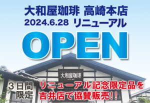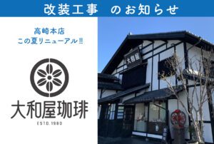 ネットショップ 店舗のお知らせ 重要なお知らせ 採用のお知らせ 全てのお知らせ 店舗 直営店 YAMATOYA COFFEE 32 2024年7月1日 7/1(月)期間限定発売‼︎ブルーベリーメニュー 店舗 直営店 高崎本店 2024年6月30日 夏の贈り物揃っています。 店舗 直営店 高崎本店 2024年6月28日 【夏に楽しみたい珈琲】風青し 店舗 直営店 高崎本店 2024年6月26日 6月28日(金)〜30日(日)リニューアル記念イベント開催!! 店舗 直営店 高崎吉井店 2024年6月24日 【協賛企画】高崎本店リニューアル 店舗 大和屋総合 2024年6月20日 【6月21日(金)発売】PERSONZファンの皆さんにおくるコーヒー“DEAR YOU” 《数量限定》 店舗 グループ店 栃木 2024年6月19日 【那須塩原店】7月臨時休業日と定休日変更のお知らせ 店舗 直営店 大和屋テラス 2024年6月14日 【期間限定】「ゼリーソフト」販売開始 店舗 直営店 YAMATOYA COFFEE 32 2024年6月7日 6/8(土)期間限定‼️自家製コーヒーゼリー発売 店舗 大和屋総合 2024年6月5日 【上毛新聞】視点 オピニオン21掲載 店舗 直営店 高崎本店 2024年6月4日 6月8日(土)〜16日(日) 大和屋企画展【九州のじげもん】 店舗 直営店 YAMATOYA COFFEE 32 2024年6月3日 6/4(火)期間限定‼️世界のコーヒーin「タイ」 店舗 大和屋総合 2024年6月1日 【新商品】黒高嶺 アイス珈琲《数量限定》 店舗 大和屋総合 2024年5月31日 大和屋スタッフブログ deepresso取材風景ご紹介「アウトドアで愉しむコーヒーのススメ」(5月31日更新) 店舗 直営店 大和屋テラス 2024年5月30日 【大学生割】実施中! 店舗 直営店 高崎本店 2024年5月25日 【お知らせ】高崎本店 改装工事のご案内(5/21更新) 店舗 直営店 高崎本店 2024年5月17日 【夏に楽しみたい珈琲】フルーツバスケット・サントスピーベリー 店舗 直営店 高崎本店 2024年5月16日 《夏商品続々入荷!!》 夏の主役アイスコーヒーと涼やかなコーヒースイーツ 店舗 直営店 高崎本店 2024年5月15日 《イベント出店》5/19(日) 第2回はなみずきドッグウッドフェス 店舗 大和屋総合 2024年5月11日 【季節限定】手軽にアイスコーヒーを!「冷珈琲ドリップパック」発売 最初前1718192021次最後 お知らせ 全て ネットショップ 店舗からのお知らせ 大和屋総合 直営店 高崎本店 高崎吉井店 前橋六供店 大和屋テラス YAMATOYA COFFEE 32 グループ店 群馬 埼玉 南関東 甲信越北陸 中部/近畿 九州 北海道/東北 栃木 重要なお知らせ ネットショップ 店舗 店舗イベント 全てのイベント 直営店 高崎本店 高崎吉井店 前橋六供店 大和屋テラス YAMATOYA COFFEE 32 つれづれ記 全てのつれづれ記 動画 ブログ