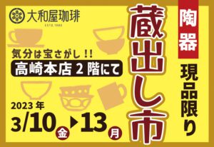 ネットショップ 店舗のお知らせ 重要なお知らせ 採用のお知らせ 全てのお知らせ 店舗 大和屋総合 2023年4月3日 4月7日(金)【限定品】エルサルバドル エルトパシオ農園発売 店舗 直営店 YAMATOYA COFFEE 32 2023年4月3日 4/3~【限定】蕎麦の実焙煎珈琲-soba-販売 店舗 大和屋総合 2023年3月31日 4月14日(金)【季節限定品】カフェミント発売!! 店舗 直営店 大和屋テラス 2023年3月30日 4/1価格改定のお知らせ 店舗 大和屋総合 2023年3月28日 令和4年度「SDGsぐんまビジネスプラクティス(先進事例)」として選定されました。 店舗 直営店 高崎吉井店 2023年3月24日 3/25(土)26(日)春のパン祭り《高崎吉井店限定》 店舗 直営店 高崎本店 2023年3月24日 3月24日(金)~【数量限定】クリスタルマウンテンキャンペーン 店舗 直営店 YAMATOYA COFFEE 32 2023年3月15日 3/17(金)発売‼︎オリーブ抹茶ラテ・オリーブソフト 店舗 直営店 高崎本店 2023年3月11日 端午の節句 店舗 直営店 高崎本店 2023年3月9日 3月30日(木)まで 陶器・和紙ラッピングサービス 店舗 直営店 高崎吉井店 2023年3月8日 3/18~21 ららん藤岡出店 店舗 直営店 高崎本店 2023年3月8日 3月10日(金)~13日(月) 蔵出し市 開催! 店舗 直営店 YAMATOYA COFFEE 32 2023年3月3日 3/3(金)〜3/15(水)期間限定‼︎はにわカフェ 店舗 直営店 大和屋テラス 2023年2月27日 3/3~いちごミルクアレンジドリンク【期間限定】 店舗 直営店 大和屋テラス 2023年2月24日 2/25・26プチイベント【陶器でコーヒーを味わえる日】 店舗 直営店 YAMATOYA COFFEE 32 2023年2月20日 2/3(金)〜2/19(日)期間限定‼︎世界のコーヒーinベトナム 店舗 直営店 大和屋テラス 2023年2月18日 3/15(水)31(金)臨時休業 店舗 直営店 高崎本店 2023年2月18日 コーヒープチギフトいろいろ 店舗 直営店 高崎本店 2023年2月17日 【陶芸館】ミモザの贈り物 店舗 直営店 高崎本店 2023年2月10日 【猫・犬写真コンテスト】にゃんだふる賞・わんだふる賞発表 最初前2728293031次最後 お知らせ 全て ネットショップ 店舗からのお知らせ 大和屋総合 直営店 高崎本店 高崎吉井店 前橋六供店 大和屋テラス YAMATOYA COFFEE 32 グループ店 中部/近畿 九州 北海道/東北 栃木 群馬 埼玉 南関東 甲信越北陸 重要なお知らせ ネットショップ 店舗 店舗イベント 全てのイベント 直営店 高崎本店 高崎吉井店 前橋六供店 大和屋テラス YAMATOYA COFFEE 32 つれづれ記 全てのつれづれ記 動画 ブログ
