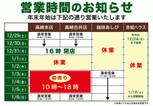 ネットショップ 店舗のお知らせ 重要なお知らせ 採用のお知らせ 全てのお知らせ 店舗 大和屋総合 2019年1月7日 1月9日(水)~15日(火) 第14回大群馬展出店 店舗 大和屋総合 2019年1月6日 【季節限定販売】カフェいちご 販売中 店舗 大和屋総合 2018年12月28日 2019年1月1日~3日 山名八幡宮【弁天講プロジェクト】福引・福袋 に協賛します 店舗 直営店 高崎本店 2018年12月28日 店内にひとやすみコーナーができました。 店舗 大和屋総合 2018年12月25日 「がんばろう東北珈琲」―11月分 義援金振込みのご報告 店舗 直営店 高崎本店 2018年12月23日 年末年始の営業について 店舗 直営店 高崎吉井店 2018年12月21日 2019年1月3日(木)~ 初売り!! 店舗 直営店 高崎本店 2018年12月21日 2019年1月3日(木)~ 高崎本店 初売り!! 店舗 直営店 高崎本店 2018年12月21日 12月22日(土)・23日(日)・24日(祝)【土・日・祝 限定】《福ベーグル》ベーグル販売 店舗 大和屋総合 2018年12月20日 【出店情報】12月23日(日) ホワイトイン クリスマスマルシェ 店舗 グループ店 北海道/東北 2018年12月19日 【郡山安積店】1月1日(火)~3日(木)新春セール開催 店舗 グループ店 栃木 2018年12月19日 【那須塩原店】12月30日(日)~1月4日(金)臨時休業のお知らせ 店舗 直営店 高崎本店 2018年12月19日 新春珈琲・お年賀ギフト発売中 店舗 直営店 高崎吉井店 2018年12月13日 年末年始の営業について 店舗 直営店 高崎吉井店 2018年12月12日 【高崎吉井店】12月16日(日)こんにゃくパーク出店 店舗 大和屋総合 2018年12月7日 【販売開始】12月7日(金)〜 《期間限定珈琲》新春珈琲 店舗 直営店 高崎本店 2018年12月7日 12月15日(土)・16日(日)【土・日限定】《福ベーグル》ベーグル販売 店舗 直営店 高崎本店 2018年12月5日 【12月9日(日)限定】お箸の名入れ(無料) 店舗 グループ店 群馬 2018年12月5日 【伊勢崎連取店】営業時間と定休日の変更 店舗 大和屋総合 2018年12月4日 【イベント出店】12/6(木)~東武百貨店 池袋店【ニッポンのうまいもの祭 in TOBU】 最初前6061626364次最後 お知らせ 全て ネットショップ 店舗からのお知らせ 大和屋総合 直営店 大和屋テラス YAMATOYA COFFEE 32 高崎本店 高崎吉井店 前橋六供店 グループ店 北海道/東北 栃木 群馬 埼玉 南関東 甲信越北陸 中部/近畿 九州 重要なお知らせ ネットショップ 店舗 店舗イベント 全てのイベント 直営店 大和屋テラス YAMATOYA COFFEE 32 高崎本店 高崎吉井店 前橋六供店 つれづれ記 全てのつれづれ記 動画 ブログ