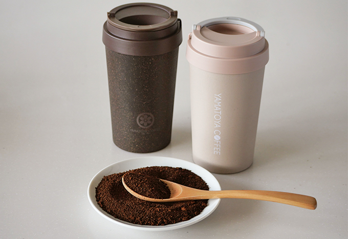 このタンブラーはコーヒーかすを30%使用することで、廃棄量を減らし、プラスチックの削減につながっています。