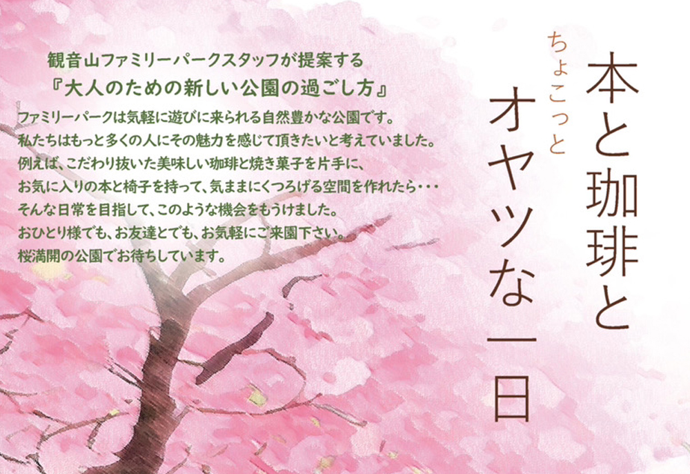 いま流行りのチェアリングで公園の好きな場所でくつろぎながら、こだわり抜いた珈琲とおいしいパンやオヤツを傍らに読書を。