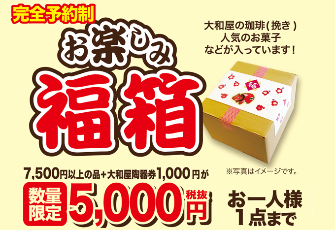 7,500円以上の品 +大和屋陶器券1,000円が 5,000円+税にて販売!