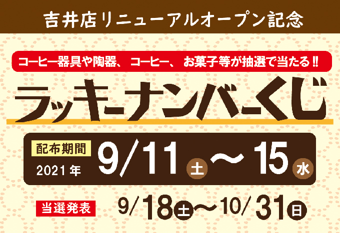 当選発表および景品引換期間:9月18日(土) ~10月31日(日) 吉井店店頭にて