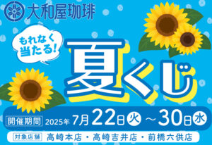 ネットショップ 店舗のお知らせ 重要なお知らせ 採用のお知らせ 全てのお知らせ 店舗 大和屋総合 2025年7月25日 《大和屋スタッフブログ》おススメ!夏の帰省ギフトセット(7月25日更新) 店舗 大和屋総合 2025年7月3日 【7月3日(木)発売】PERSONZ ファンの皆さんにおくるコーヒー“WONDER” 《数量限定》 店舗 大和屋総合 2025年7月2日 【7月4日(金)発売】夏に楽しみたい珈琲 第2弾「モカ バイオレット」 店舗 大和屋総合 2025年7月1日 7月22日(火)~30日(水)【直営店3店舗にて開催】大和屋珈琲「夏くじ」 店舗 大和屋総合 2025年6月19日 6月20日(金)《数量限定》スイカな珈琲ドリップパック珈琲 今季販売開始 店舗 大和屋総合 2025年5月30日 【5月30日(金)発売】《数量限定》黒高嶺 アイス珈琲 店舗 大和屋総合 2025年5月23日 【5月23日(金)発売】夏に楽しみたい珈琲「風青し」「ルワンダ ルビー」 店舗 大和屋総合 2025年5月23日 大和屋スタッフブログ 夏に楽しみたい珈琲発売(5月23日更新) 店舗 大和屋総合 2025年5月9日 5月9日(金)発売【季節限定】冷珈琲ドリップパック 店舗 大和屋総合 2025年5月9日 5月9日(金)発売【季節限定】水出しアイス珈琲 店舗 大和屋総合 2025年4月25日 4月25日(金)発売【数量限定】黒高嶺 キリマンジャロ珈琲ゼリー 店舗 大和屋総合 2025年4月24日 4月18日発売《季節限定》珈琲わらびもち・オレンジバウムクーヘン 店舗 大和屋総合 2025年4月19日 4月25日(金)発売【新商品】ピーチな珈琲《数量限定》 店舗 大和屋総合 2025年4月18日 4月19日(土)群馬交響楽団×大和屋珈琲 コラボ珈琲「Coffee Symphony~珈琲交響曲~ドリップパック」発売 店舗 大和屋総合 2025年4月18日 季節珈琲「夏珈琲」 店舗 大和屋総合 2025年4月15日 4月15日(火)リキッドアイス珈琲 全種類発売 店舗 大和屋総合 2025年3月31日 【重要】一部コーヒー商品 価格改定のお知らせ 店舗 大和屋総合 2025年3月7日 【新発売】 クイーンマンデリン 店舗 大和屋総合 2025年3月7日 大和屋スタッフブログ 「春のわくわくフェア」第1弾開催!(3月7日更新) 店舗 大和屋総合 2025年2月28日 大和屋スタッフブログ 週末がお得!!春のわくわくフェア開催 (2月28日更新) 前12345次最後 お知らせ 全て ネットショップ 店舗からのお知らせ 大和屋総合 直営店 高崎本店 高崎吉井店 前橋六供店 大和屋テラス YAMATOYA COFFEE 32 グループ店 群馬 埼玉 南関東 甲信越北陸 中部/近畿 九州 北海道/東北 栃木 重要なお知らせ ネットショップ 店舗 店舗イベント 全てのイベント 直営店 高崎本店 高崎吉井店 前橋六供店 大和屋テラス YAMATOYA COFFEE 32 つれづれ記 全てのつれづれ記 動画 ブログ