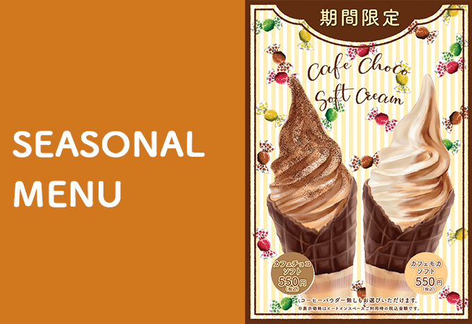 ※限定ソフト販売期間はコーヒーソフト及びカフェオレソフトはお休みさせていただきます。