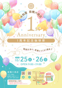 【予告】10/25(土)26(日) 1周年記念珈琲祭