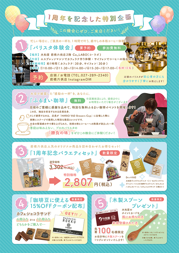 1周年を記念した特別企画!この機会にぜひ、ご来店ください!