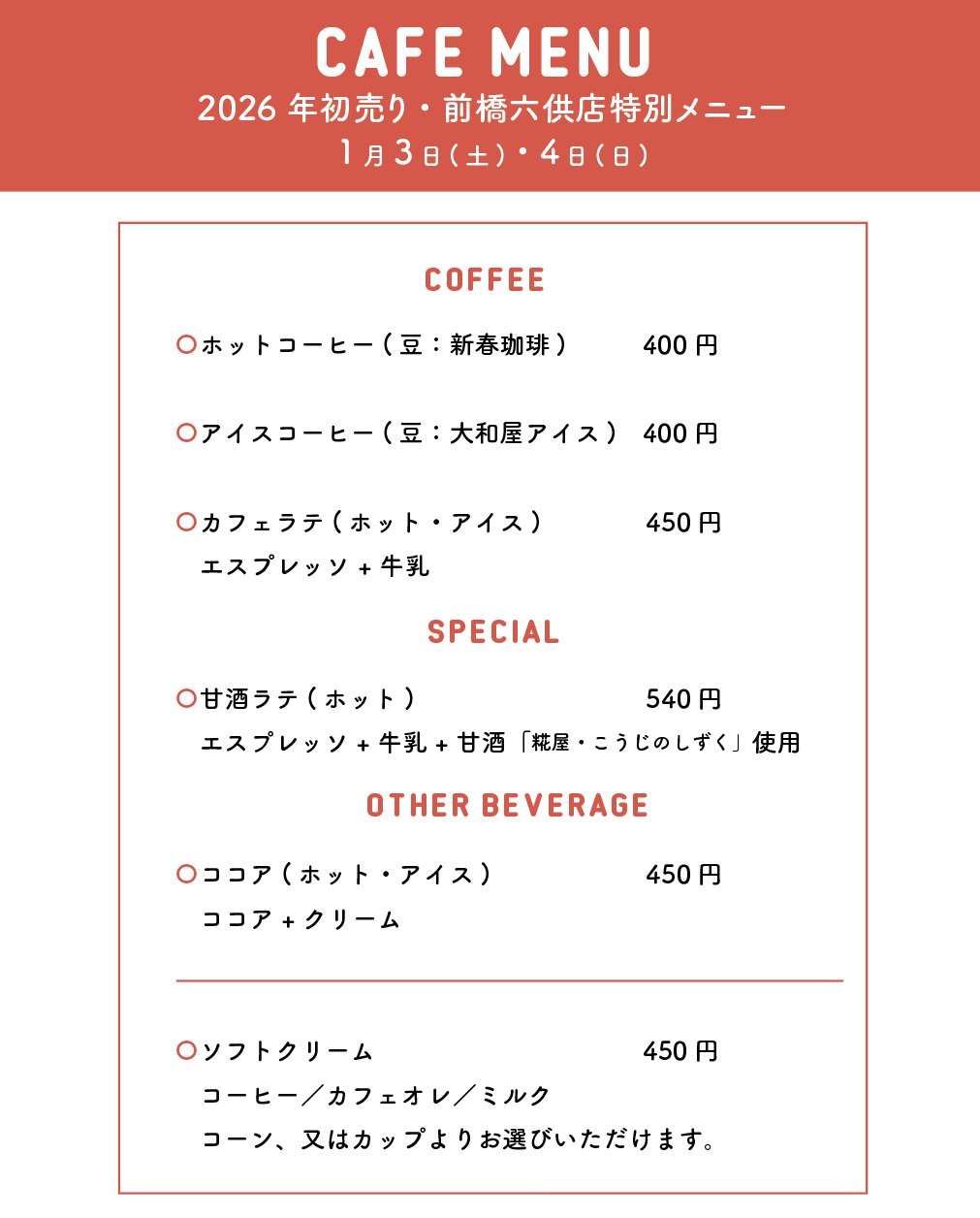 初売り期間【限定メニュー】