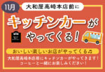 キッチンカーが大和屋高崎本店、大和屋テラス前にやってきます!! 場所▼大和屋珈琲 高崎本店正面入口前(大和屋テラス前) お問い合わせ、ご予約は各店様へお願いいたします。 荒天・事情により店舗