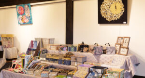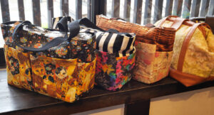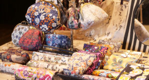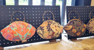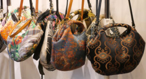 バッグ・カルトナージュ・洋服・インテリア雑貨など、約200点以上を展示販売いたします。輸入生地を中心に色とりどりの作品を取り揃えております。