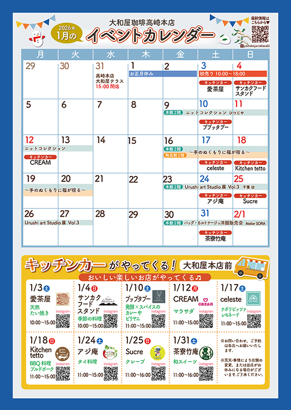キッチンカーが大和屋高崎本店、大和屋テラス前にやってきます!!