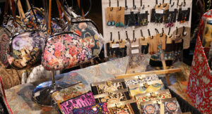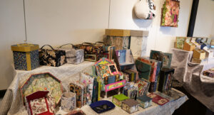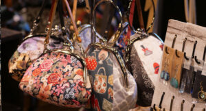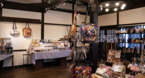 バッグ・カルトナージュ・洋服・インテリア雑貨など、約200点以上を展示販売いたします。輸入生地を中心に色とりどりの作品を取り揃えております。