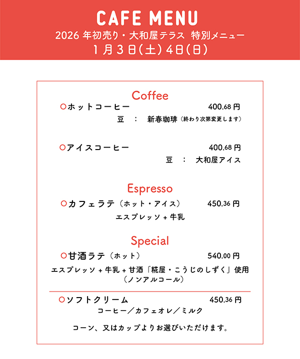 ※1月3日のみソフトクリームは13:00からの販売となります。