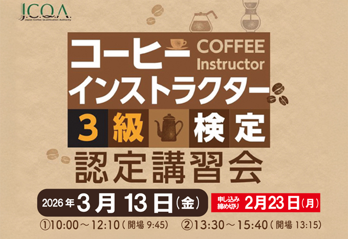 3月13日(金)コーヒーインストラクター3級検定・認定講習会開催