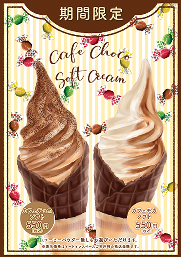 期間限定で「カフェチョコソフト・カフェモカソフト」を販売いたします!