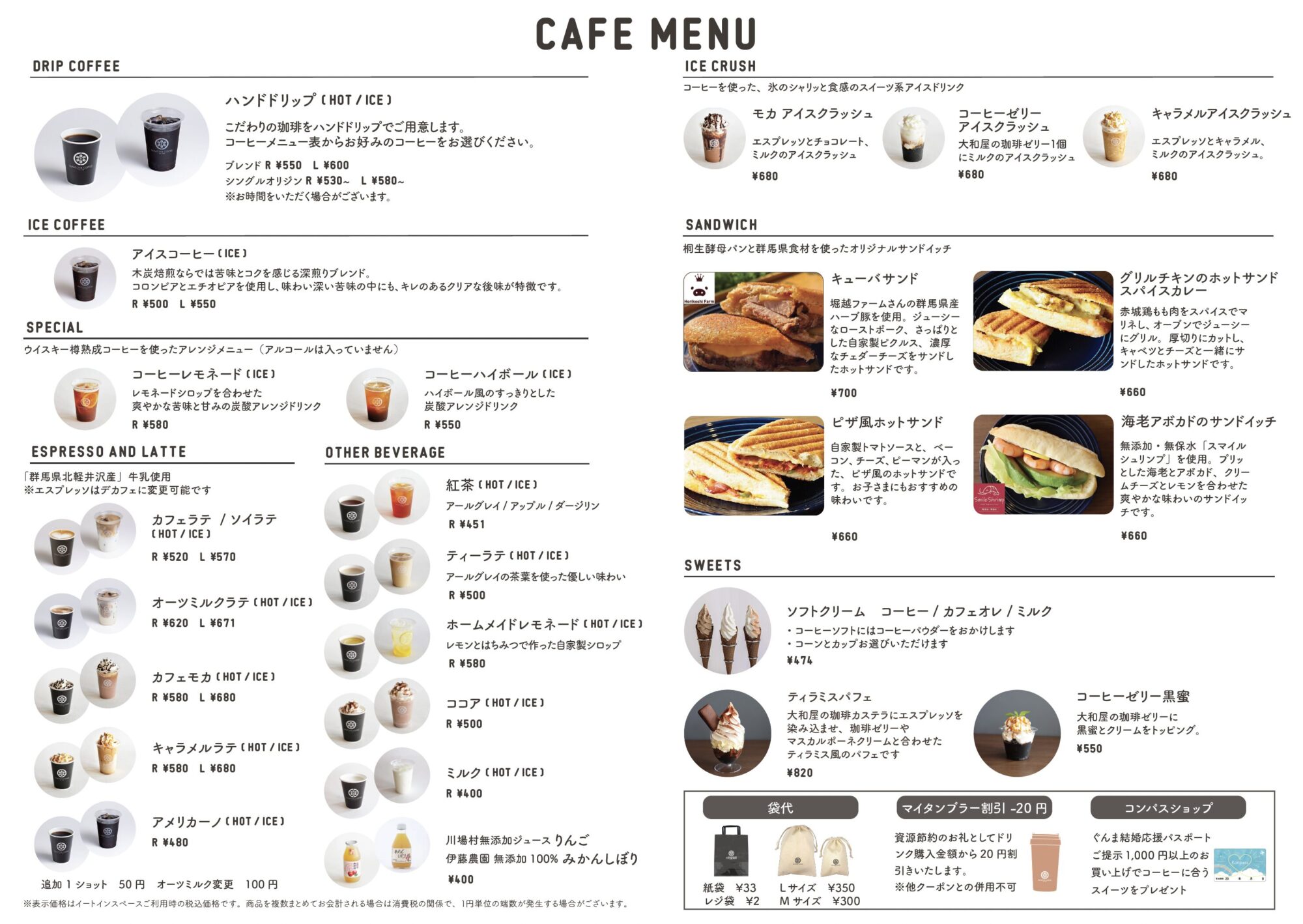 表示価格はイートインスペースご利用時の税込価格です。